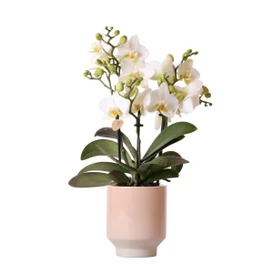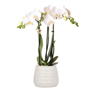 Kolibri Orchids | Witte Phalaenopsis orchidee – Amabilis + Scandic sierpot wit – potmaat Ø9cm – 40cm hoog | bloeiende kamerplant in bloempot – vers van de kweker