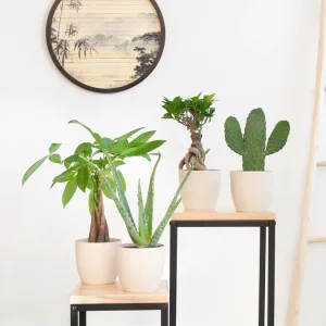 De Kleine Plantenbox bestaat uit 4 tropische kamerplanten met potmaat 12. Elke plant heeft een uniek uiterlijk, met een bijzondere bladvorm of mooie groentint. Met deze tropische planten breng je jouw interieur helemaal in de jungle-sferen! Hoewel elke kamerplant uit de Tropische Plantenbox een uniek uiterlijk heeft, vormen ze samen een mooi geheel. Als tropische planten geven ze jouw woonkamer, slaapkamer of kantoorruimte een frisse en ontspannende uitstraling. Bovendien kunnen ze aardig snel groeien, zeker in de lente en zomer. De Kleine Plantenbox bestaat uit de volgende kamerplanten: * Bananenplant (https://www.plantje.nl/musa-tropicana-bananenplantje-p-12-cm/): potmaat 12, ca. 30 cm hoog * Monstera adansonii (https://www.plantje.nl/monstera-obliqua-p-12-cm/): potmaat 12, ca. 25 cm hoog * Pannenkoekplant (https://www.plantje.nl/pilea-peperomioides-pannenkoekplant-p-12-cm/): potmaat 12, ca. 20 cm hoog * Strelitzia reginae