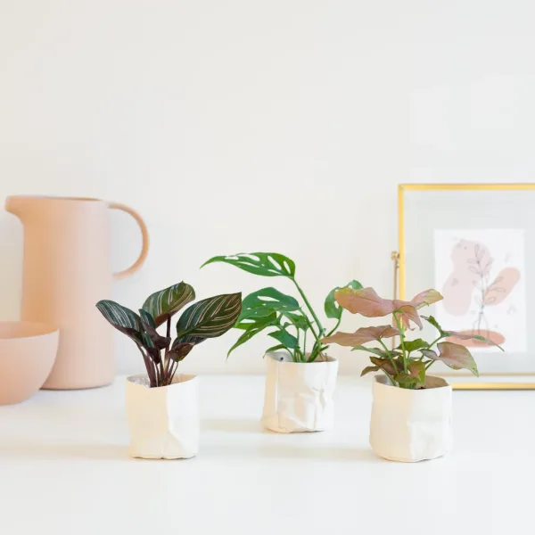 Jullie vroegen er massaal naar, en nu is hij er: de Stekjesbox, inclusief minibags! Een plantenbox met 3 kleine stekjes, klaar om uit te groeien tot grote kamerplanten. De bijgeleverde minibags zijn gemaakt van katoen met een Bio LDPE inlay. Dit betekent dat ze recyclebaar zijn. De Stekjesbox bestaat uit 3 stekjes: een Monstera adansonii, Syngonium Neon en de Calathea Ornata. Ze beginnen misschien klein, maar het zijn stuk voor stuk snelle groeiers. Mocht een van de afgebeelde stekjes niet leverbaar zijn, dan zorgen we voor een passend alternatief. Voor je het weet zijn deze babyplantjes volwassen! De Stekjesbox wordt standaard in een mooie giftbox geleverd. Inclusief minibags én 3 gratis Grondleggers (https://www.plantje.nl/grondlegger-mini-2-stuks/) (aardetabletten), om de stekjes een vliegende start te geven. Deze Grondleggers bevatten 100% organische plantenvoeding; het is kant en klare potgrond, inclusief voeding. Het enige dat je hoeft te doen, is dit mixen met water. Je hebt