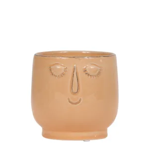 Kolibri Home | Happy face peach bloempot – Peach kleurige keramieken sierpot Ø9cm